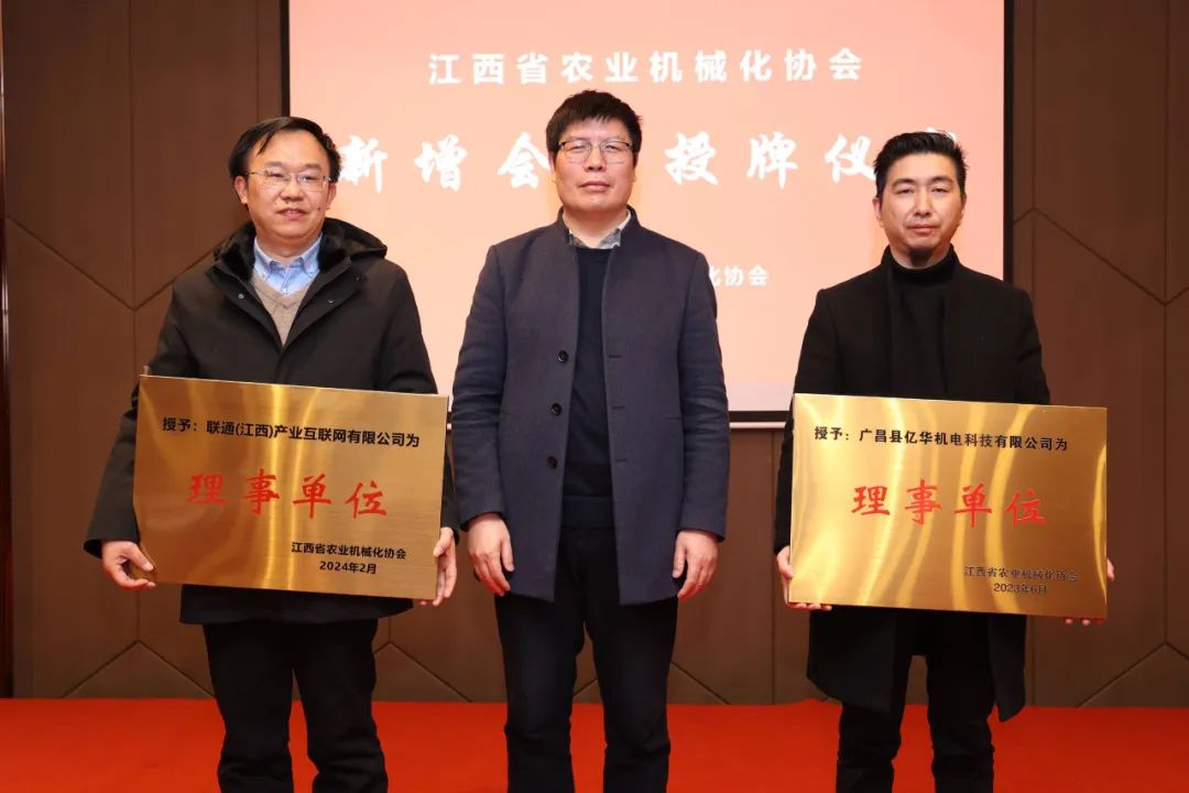 此外,新加入的副会长单位江西省山宜智能装备有限公司、南昌赣农贸易有限公司,以及理事单位联通(江西)产业互联网有限公司、广昌县亿华机电科技有限公司,在会上接受了隆重的授牌仪式。这一仪式不仅是对他们加入协会的认可,更是对他们为农业机械化事业做出的贡献的肯定。同时,江西省农业机械化协会流通分会也进行了授牌仪式。15位副会长、38位理事单位接受了授牌,他们的加入将进一步加强协会的组织架构,为协会的发展提供更为坚实的支撑。这些新加入的副会长、理事单位都是在各自领域具有卓越成就和广泛影响力的企业。他们的加入,不仅为协会注入了新的活力,也为协会未来的发展提供了更为广阔的思路和更为丰富的资源。