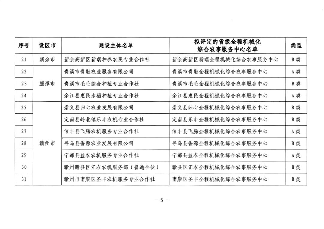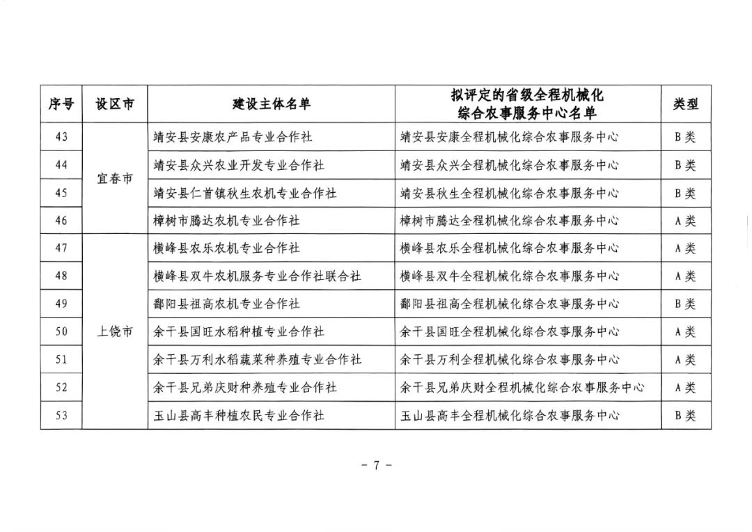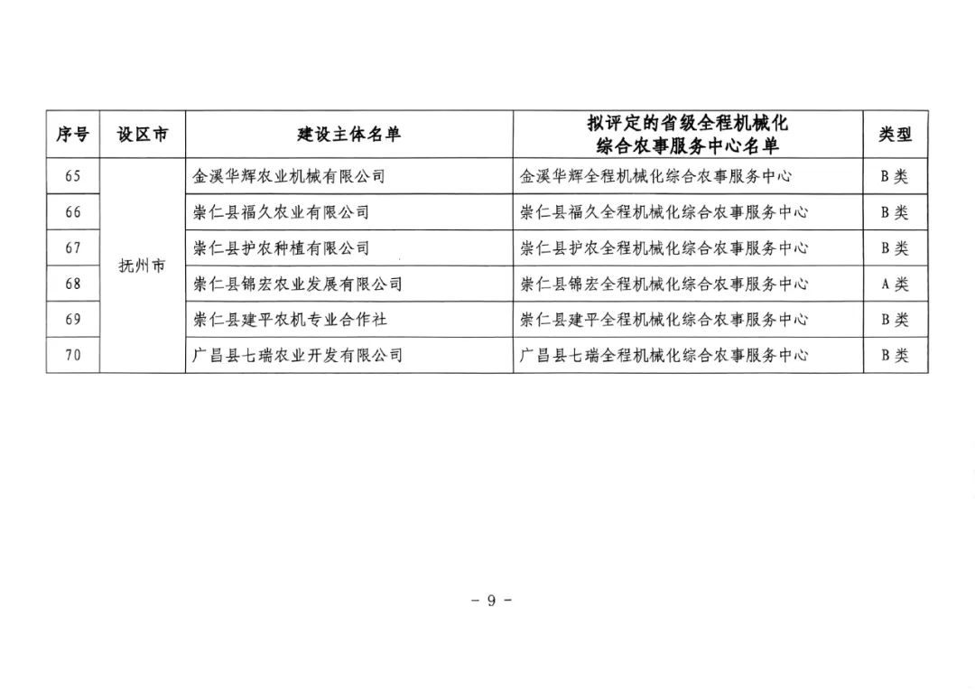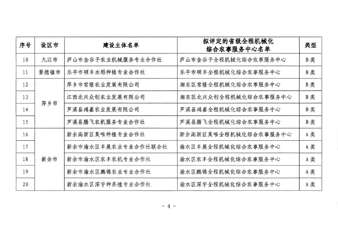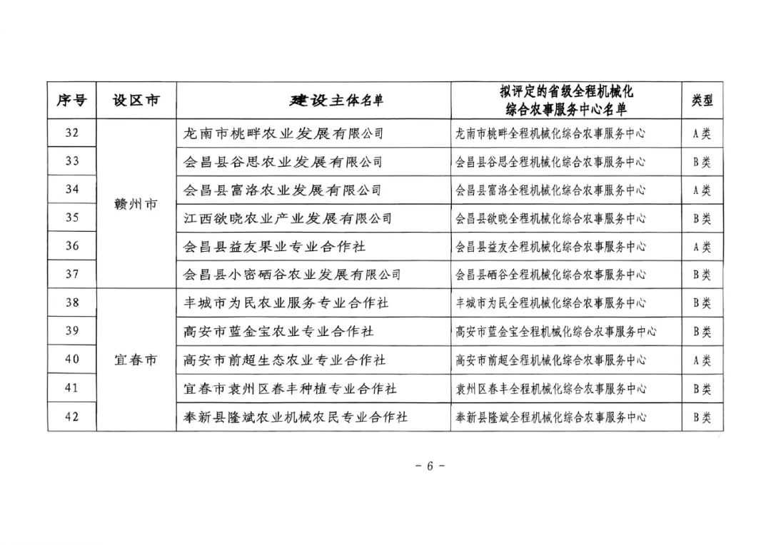 江西省农业农村厅农业机械化管理处 江西省农业技术推广中心农业机械化技术研究与推广监测处关于2023年度第三批省级全程机械化综合农事服务中心拟评定名单的公示