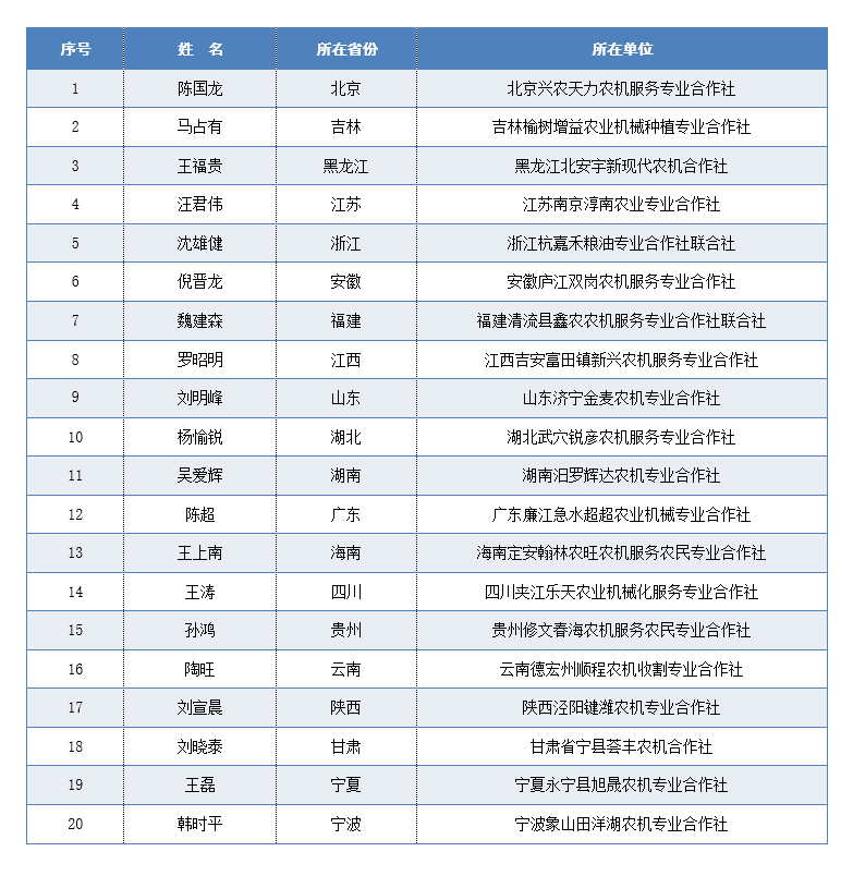 根据《关于开展2023年“最美农机合作社理事长”事迹宣传活动的通知》有关要求,主办单位积极开展推荐工作,现确定2023年“最美农机合作社理事长”事迹宣传活动重点宣传名单如下,特此公示: