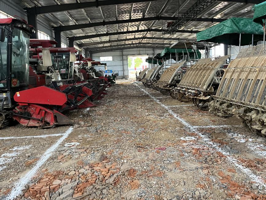 彭泽县众鑫生态农业专业合作社全过程机械化综合农事服务中心的宗旨就是充分利用中心的农业技术和农机设施,开展农事服务。服务中心现在有农机数量大型拖拉机12台,联合收割机12台,插秧机8台,打捆、旋耕机6台、飞防无人机6架、烘干机4组,一次性可烘干128吨。同时该中心为发挥农机服务的规模效益,张佳明同志以优厚的条件,整合周边农机120余台(套)参与服务中心农事托管服务,按照统一中心管理、统一农机作业规范、统一托管价格等开展农事服务工作,通过一系列的管理措施,进一步提升了中心的服务能力,使中心的年农事托管服务能力达到20余万亩。