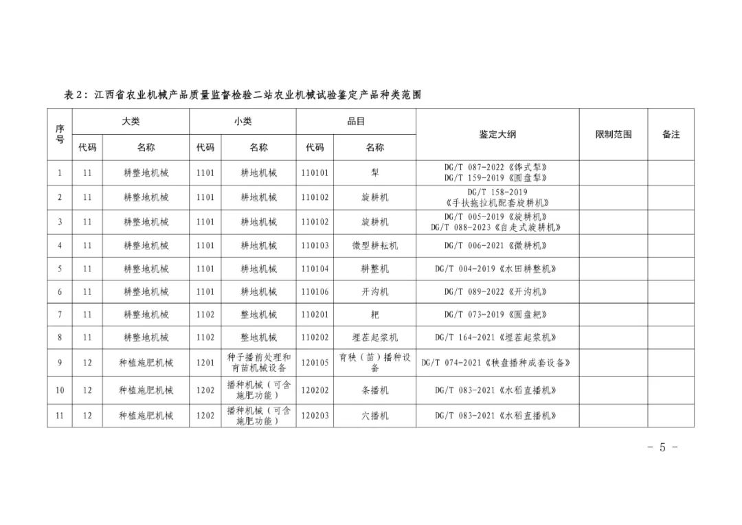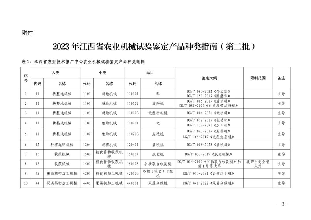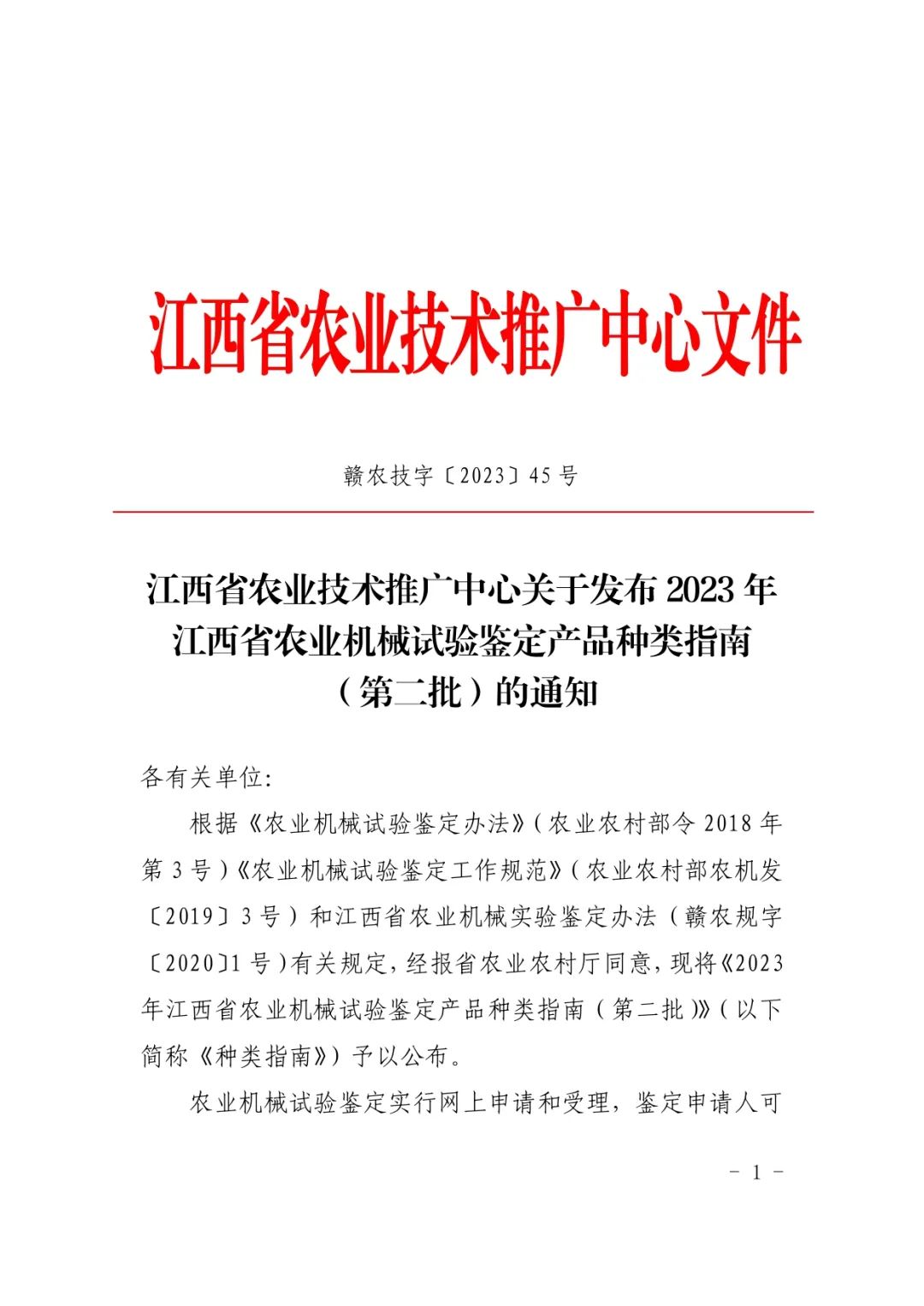 2.江西省农业技术推广中心关于发布2023年江西省农业机械试验鉴定产品种类指南(第二批)的通知(正式公文)