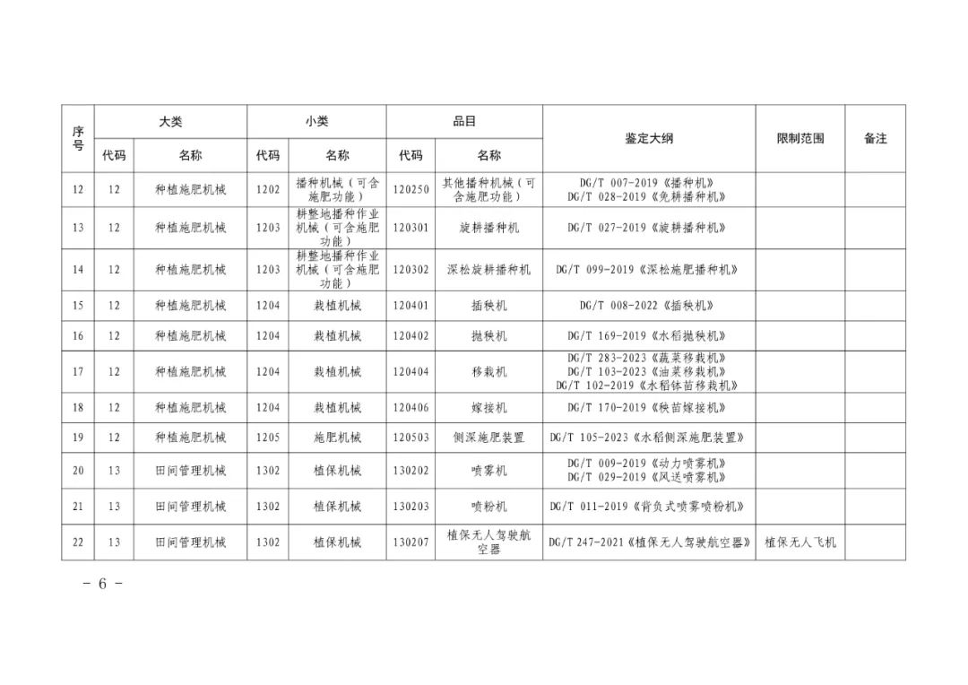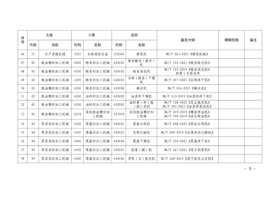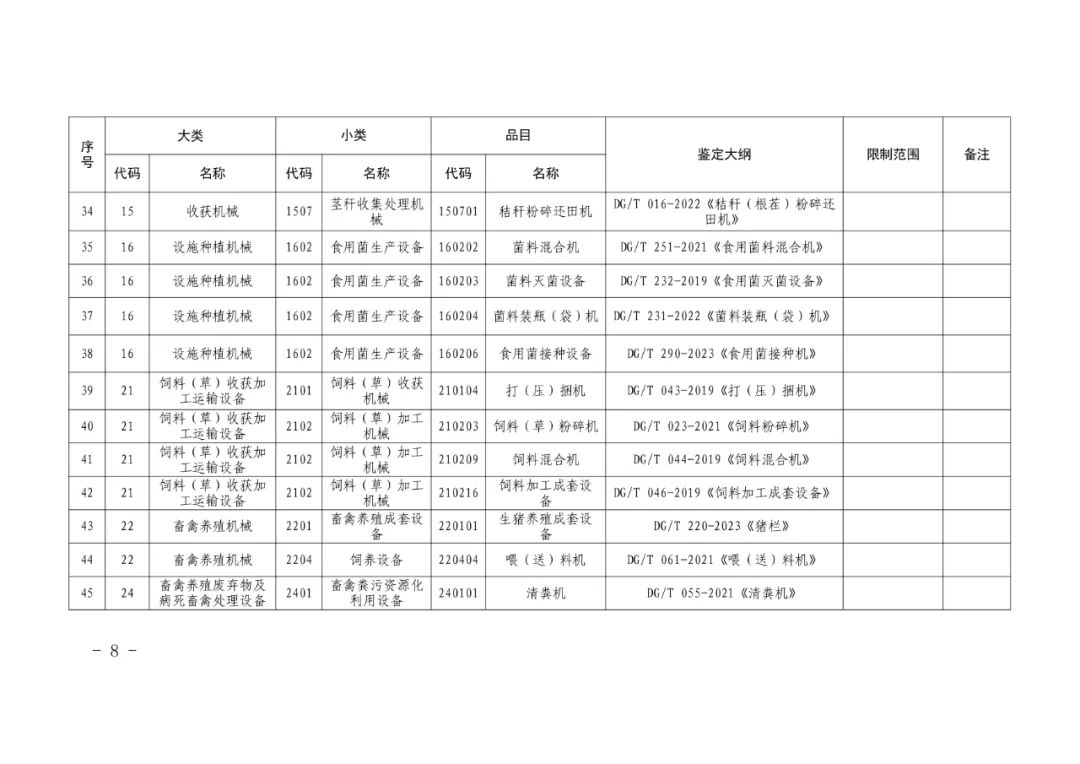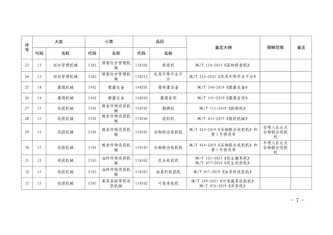 附件:1.2023年江西省农业机械试验鉴定产品种类指南(第二批)