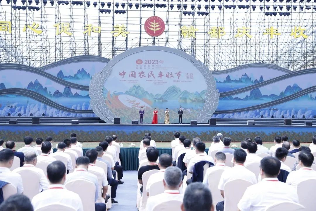 开幕式现场,来自赣江、抚河、信江、饶河、修河等鄱阳湖水系沿岸的五位农民代表,以“五河汇鄱湖”的特有方式,分享了水泽万物、生生不息的丰收喜悦。全省11个设区市产业带头人、龙头企业代表、致富能手、海归新农人、农业科技人员等“三农”代表带上特色农产品走上舞台,讲述“丰”景这边独好的精彩故事。