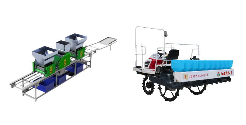 ▲秧盘育秧播种机 ▲水稻精量直播机