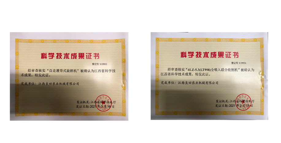 江西良田目前拥有各类先进加工设备激光切割机、激光切管机、全自动喷涂生产线、CNC加工中心、车床、关节臂三维测量机等70多台套,具备年产7500台的能力,实际产能达到年产5000台。公司开发生产的4LZ-4.0(LT988)、4LZ-5.3(LT998)、4LZ-6.5(LT999)全喂入联合收割机和1GZL-220(200)自走履带式旋耕机、直播机、育秧生产线、等产品已通过农机鉴定部门的产品推广鉴定并先后认定为省级重点新产品,全喂入联合收割机4LZ-5.3(LT998)、自走履带式旋耕机1GZL-220(200)分别入选2019、2020年度江西省首台(套)重大技术装备目录。