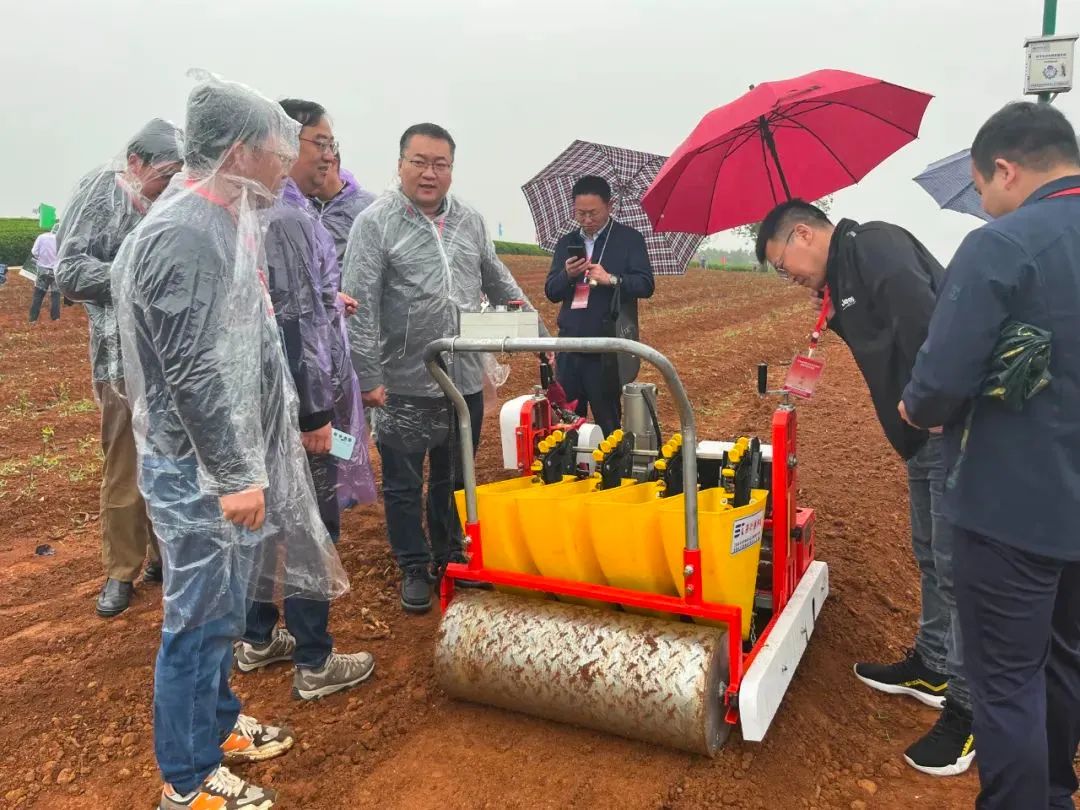 江西省农科院农业工程研究所叶春博士现场解说田间展示的耕、种、管、收及茶叶加工机械化装备和机具核心技术。在基地茶园展示区现场演示了多功能旋耕机、茶籽播种机、茶苗移栽机、茶园水肥一体化设备、茶园施肥机、植保无人机、乘坐式高地隙茶园吸虫机、低地隙茶园吸虫机、茶园单双人修剪机、单双人采茶机、无人驾驶采茶修剪机、自走式采茶机、名优茶采茶机器人、茶园运输车和防霜机等系列茶园管理装备研究成果22台套,其中,茶籽播种机,茶苗移栽机、茶叶运输车、共5种机型是首创研制,在国内茶园属于首次亮相,良好的作业效果得到了参会人员的一致好评。