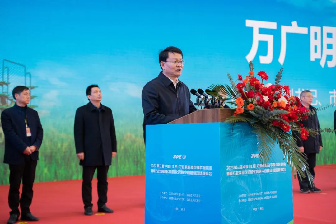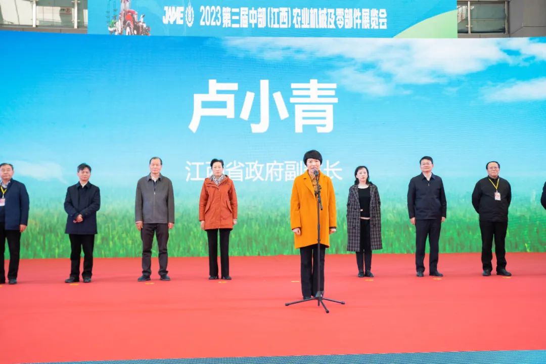 2月24日,展览会在江西省农机大市场盛大开幕,江西省副省长卢小青出席展会并宣布开幕。省农业农村厅党组书记、厅长江枝英讲话,南昌市委副书记、市长万广明致辞。