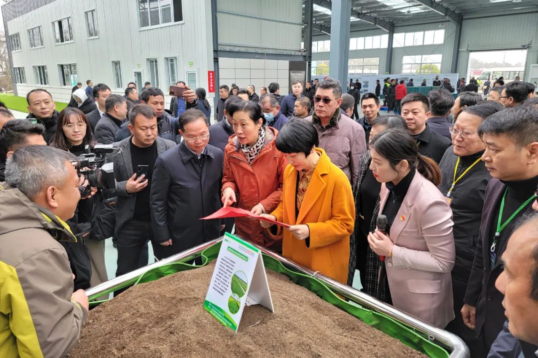 农业农村部农业机械化总站副站长徐振兴、江西省农业农村厅一级巡视员赖金生、中国农业大学工学院院长宋正河、南昌金色大田董事长邹泰晖共同为江西省南昌县数字化农业示范基地揭牌。