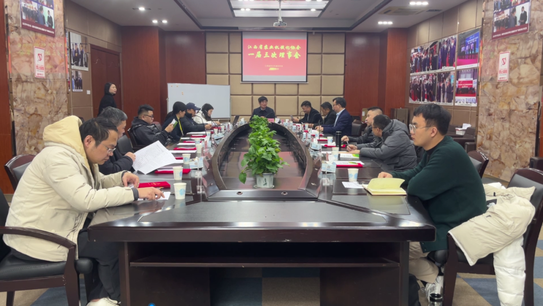 2月24日下午,江西省农业机械化协会一届三次理事会在江西省农机大市场召开,会议由协会会长吴罗发主持,副会长熊兆亮、朱仲升、邹泰晖、张惠、周港、叶二文、王飞超等出席会议,各理事及单位负责人共20余人参加会议。