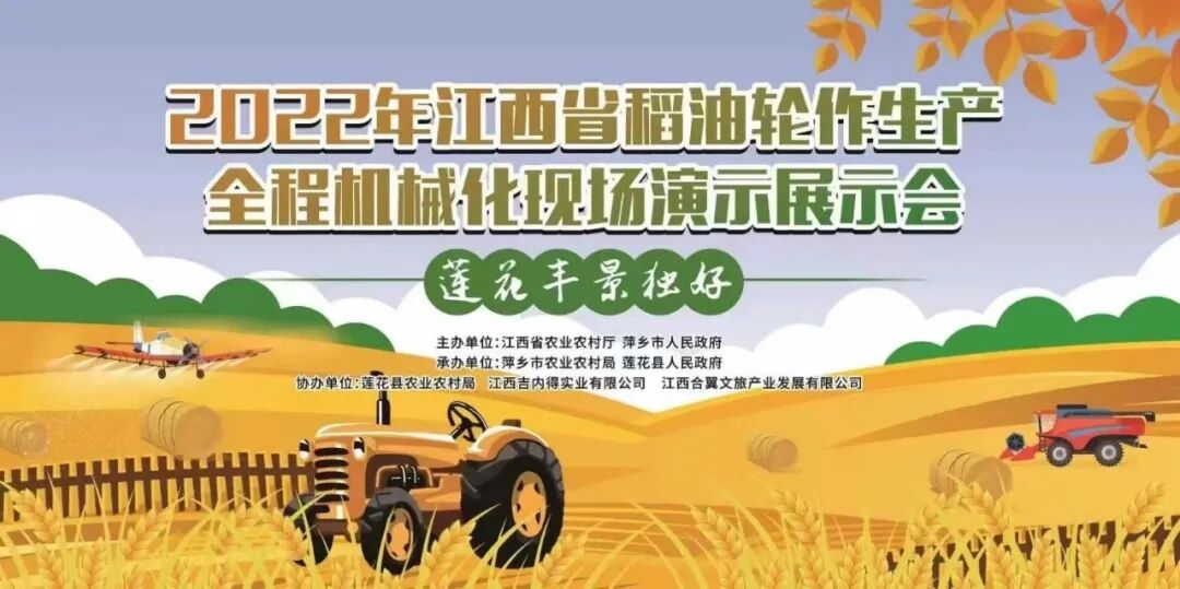 为全面实行水稻、油菜生产全程机械化,减轻作业劳动强度,促使农业增产、农民增收,10月13-14日,由江西省农业农村厅、萍乡市人民政府主办,萍乡市农业农村局、莲花县人民政府承办的2022年江西省稻油轮作生产全程机械化现场演示展示会在萍乡市莲花县举办。