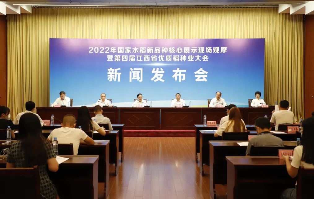 9月9日上午,2022年国家水稻新品种核心展示现场观摩暨第四届江西省优质稻种业大会新闻发布会在南昌召开。省农业农村厅党组成员、副厅长刘光华介绍有关情况;萍乡市政府副市长刘运成,江西广电传媒集团副总经理许运交,省农业农村厅种业管理处、萍乡市湘东区有关负责同志出席发布会并答记者问。