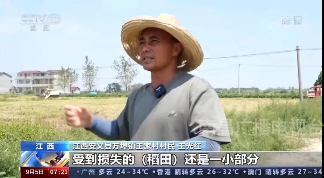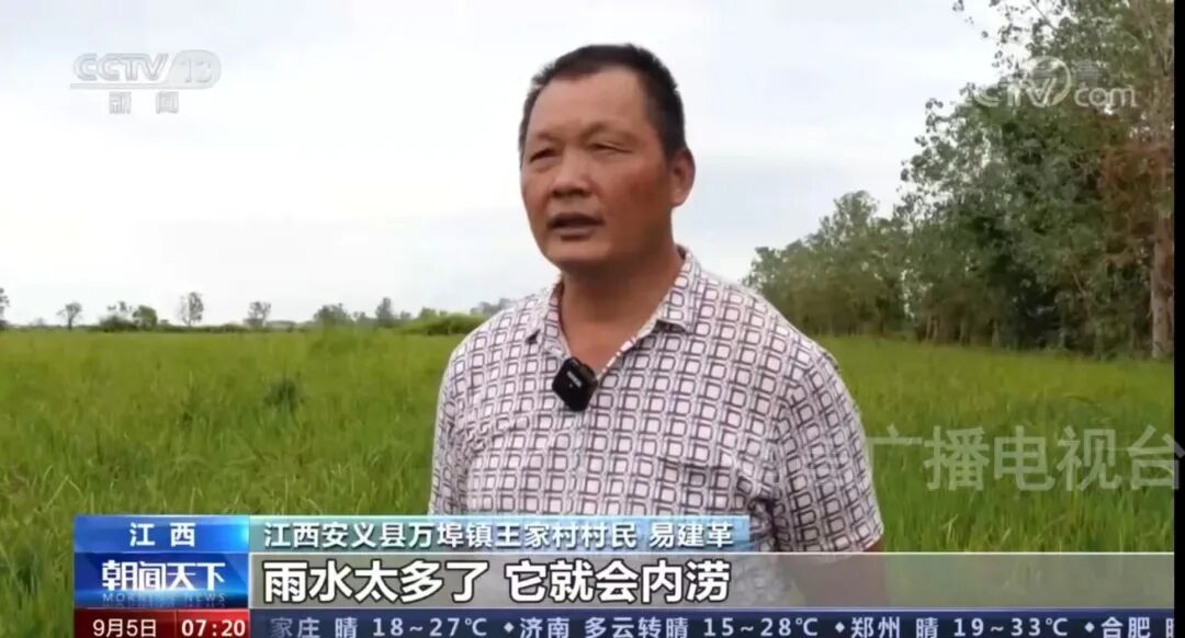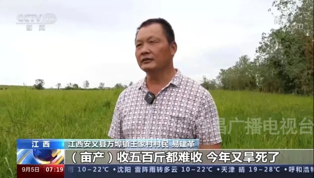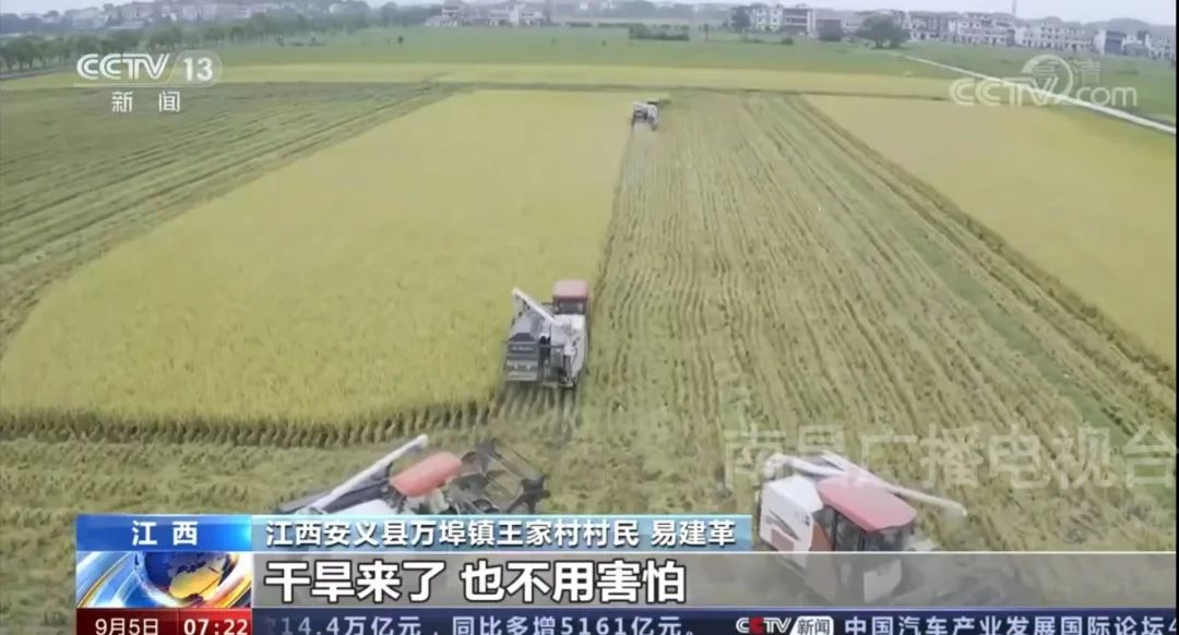 9月5日,央视《朝闻天下》报道:近段时间,江西经历了历史罕见的旱情,眼下全省的中稻已经进入了收获季。记者在南昌安义县一条圩堤的内外两侧,看到了两种不同的秋收景象。