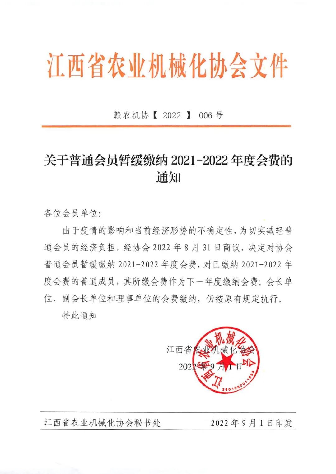 关于普通会员暂缓缴纳2021-2022年度会费的通知