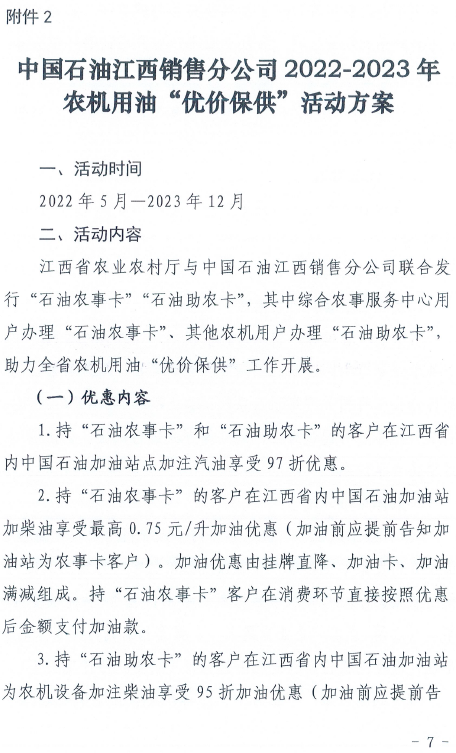 中国石油江西销售分公司2022——2023年农机用油“优价保供”活动方案