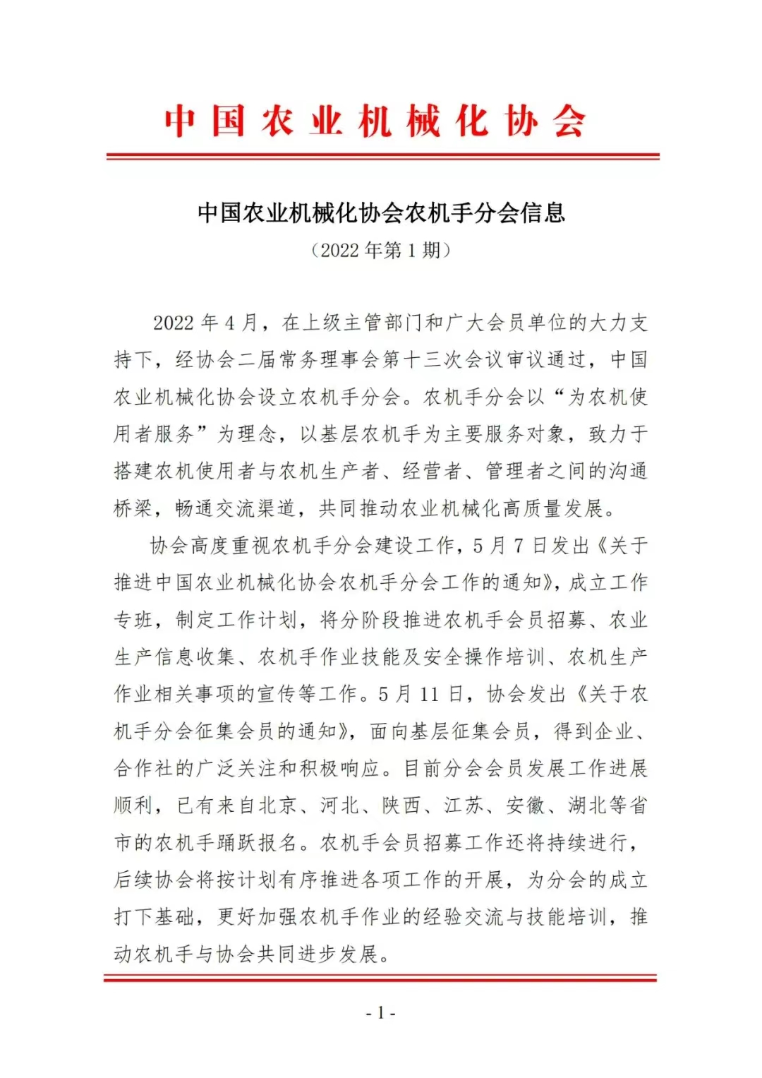 庆祝中国农业机械化协会农机手分会成立!