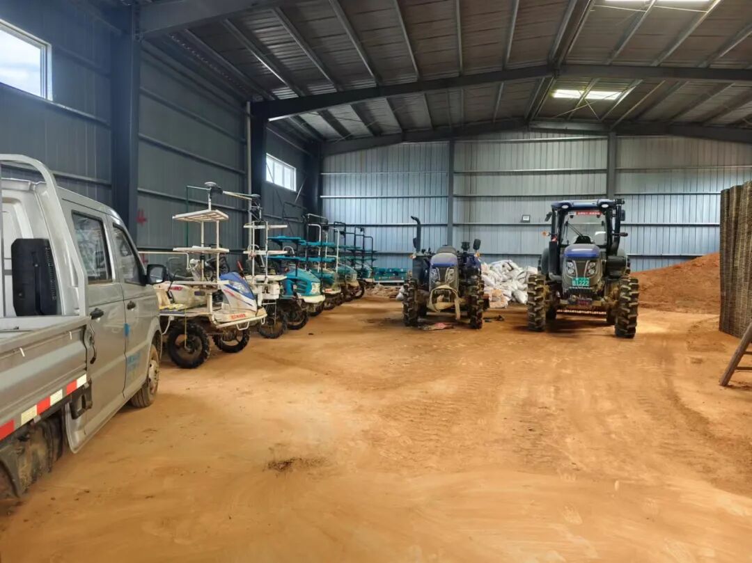 江西省新余市渝水区龙思雨蔬菜种植专业合作社创办于2021年6月,合作社以官路村为基点,服务周边1万亩的水稻田。理事长曹新根在合作社成立之初就认为不应该仅仅只靠传统的种稻手法,进而理事长去参观了很多现代化种植水稻的专业合作社,从而理事长曹新根萌发了通过购买一系列育秧设备让家乡的秧苗长得更好,更快,产量也更好的办法。这样一个想法的实施既带动了周边村民的经济,又充分体现了农业机械化带来的好处,还推动了现代化农业在小乡村的发展。正因如此,在他的领导下,合作社现已经投资建成现代化水稻育秧生产示范基地”(以下简称示范基地)1个,年覆盖10000亩的水稻育秧能力,单季为5000亩。内含育秧生产流水线3条,育秧配套设备15多套,有15700平方米温室大棚,1000平方米标准车间,8台高速插秧机,多台履带旋耕机及轮式拖拉机,十多台台无人植保机及蔬菜种植机械等若干台,以及有办公场地200平方米。可为用户提供水稻培育、机耕、机插、植保等后期配套技术和全流程“保姆式”技术托管服务。近3年来合作社为一千多户小农户提供工厂化育秧与机插服务面积达3万亩。