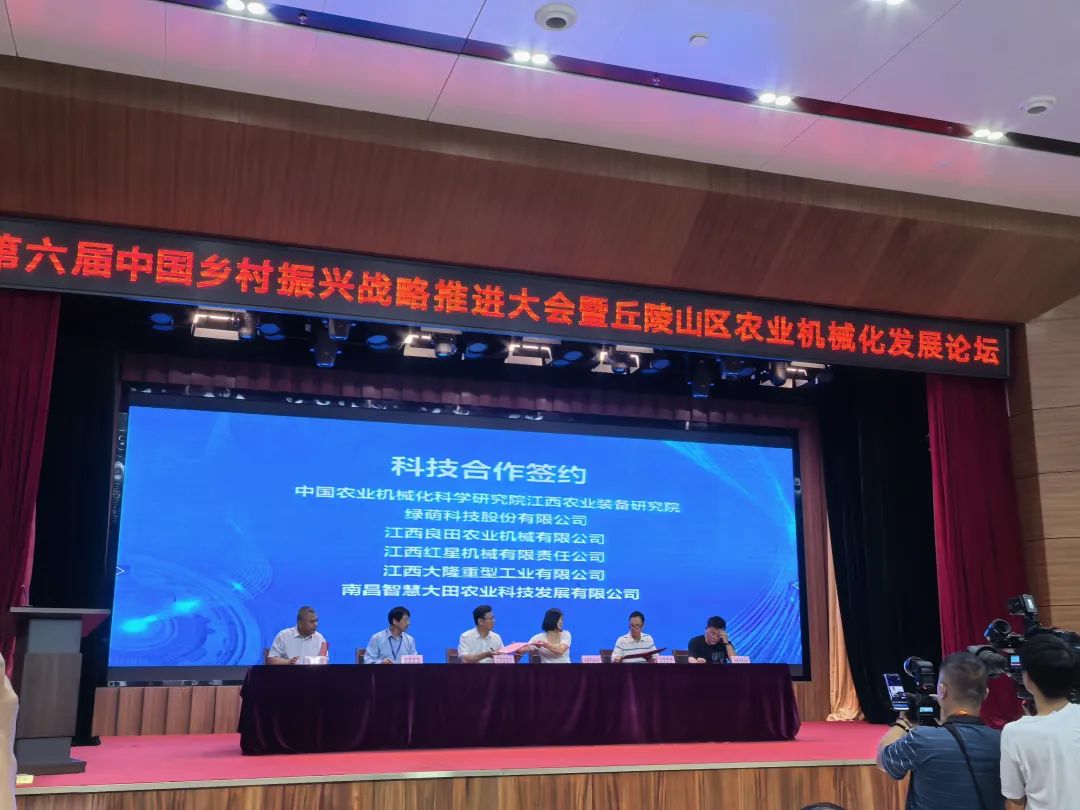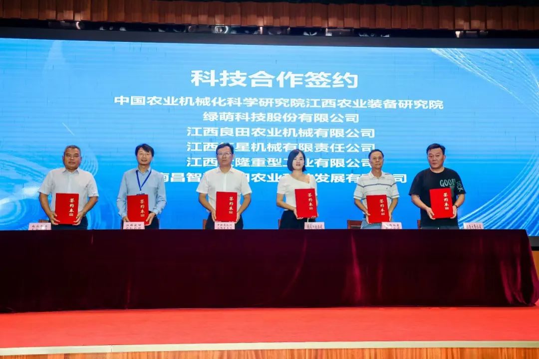 中国农业机械化科学研究院江西农业装备研究院是产学研深度融合、央地合作的重要平台。该研究院的揭牌成立开启了中国农机院与江西合作发展的新篇章,中国农业机械化科学研究院与省科技厅、省农业农村厅、省农科院、江西农业大学、南昌市政府六方签订共建协议,本着“立足江西、服务全国、资源共享、优势互补、互惠共赢、务实高效”的原则,将以江西农业装备研究院为中心,建设国家级平台江西分中心、区域试验基地,引入各类创新资源,让更多的成果尽早转化应用到江西全面推进乡村振兴实践中,发展农业和农机新质生产力,为中国式农业农村现代化创造更多的江西特色。同时聚焦产学研协同融合,江西农业装备研究院与江西省农业机械化会员单位--绿萌科技股份有限公司、江西良田农业机械有限公司、江西红星机械有限责任公司、江西大隆重型工业有限公司、南昌智慧大田农业科技发展有限公司5家企业进行了科技合作项目签约。